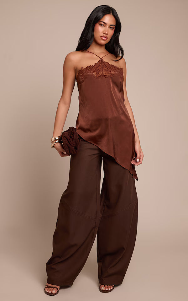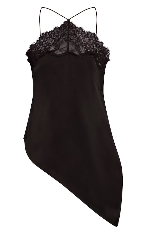 Satin Lace Halterneck Asymmetric Cami Top