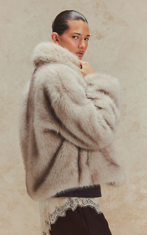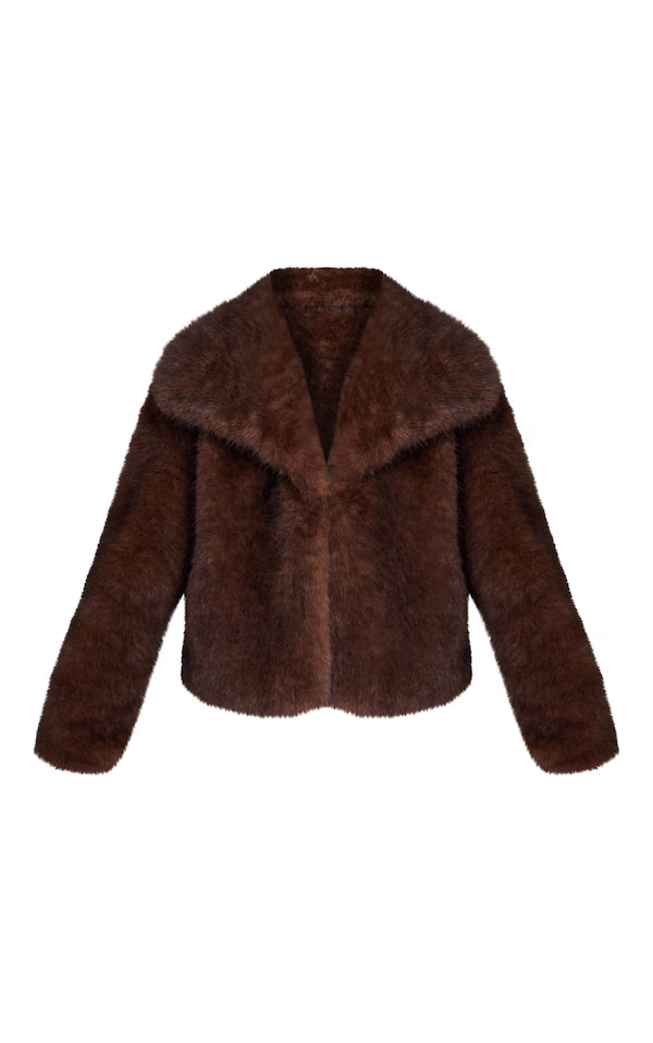 Elevate your outerwear edit with the brown faux fur short shawl collar coat. Plush faux fur and a shawl collar bring luxe vibes. Pair with a mini dress and knee-high boots for evening glam, or throw over denim and knits for chic everyday layering.