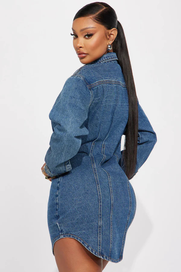 Alessandra Denim Mini Dress - Medium Wash