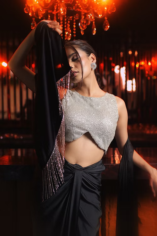 Black and silver drape skirt set