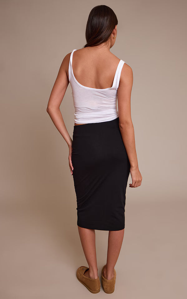 Black Basic Soft Cotton Midi Skirt