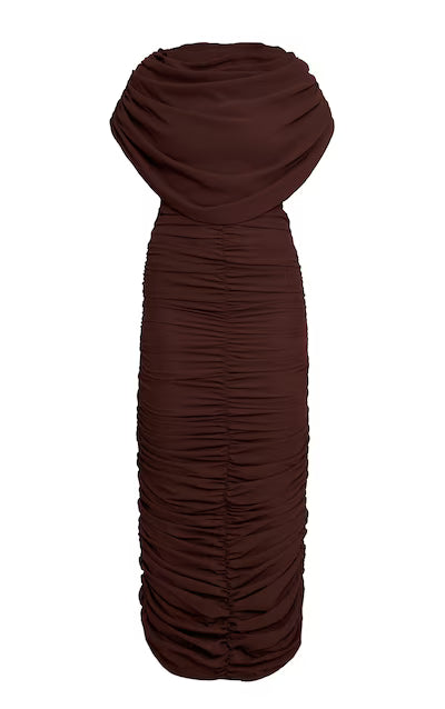 Chiffon Overlay Detail Ruched Maxi Dress