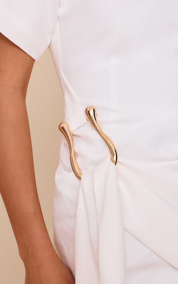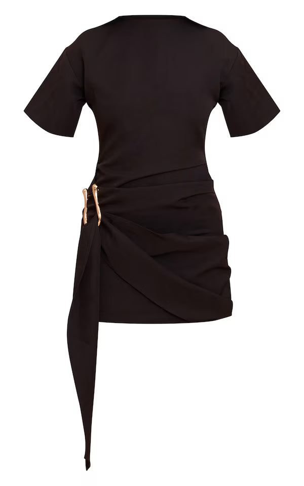 effortless piece for elevated occasions. Brought to you in a black woven fabric with contrast trim and wrap front design, it’s flattering and full of edge. Style with heeled mules and gold hoops for a sleek statement.