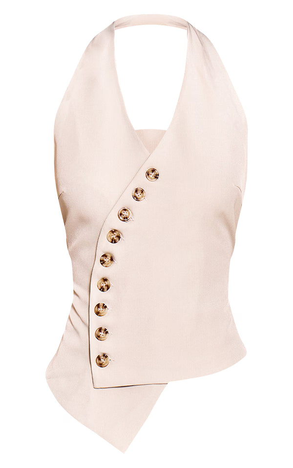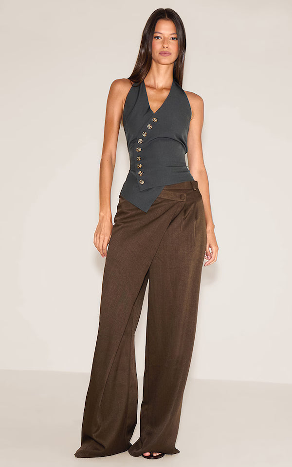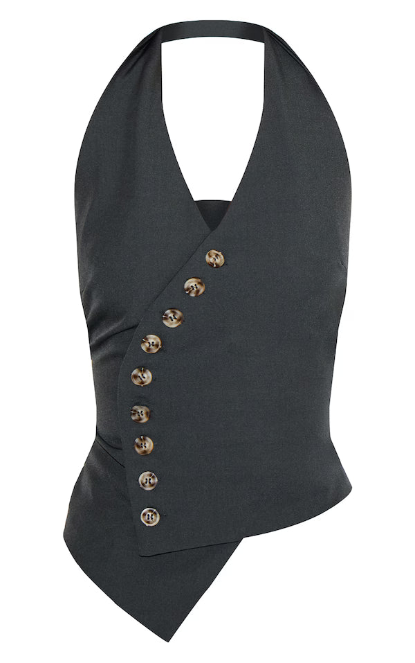 Charcoal Woven Button Detail Halterneck Waistcoat
