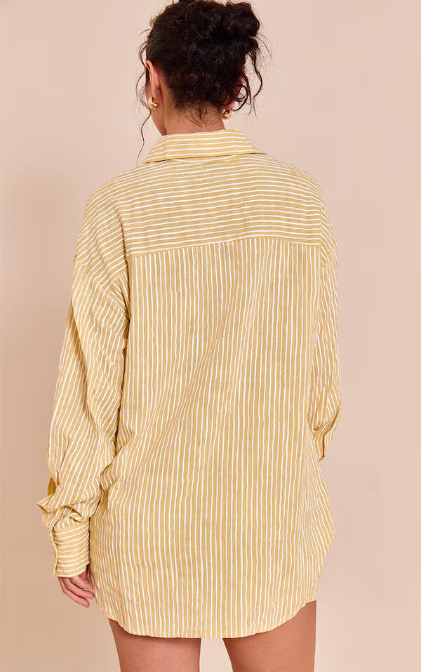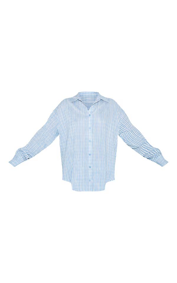 Stay cool in this blue striped linen long sleeve shirt, a classic wardrobe essential with effortless charm. Brought to you in a blue and white striped linen-blend fabric with a relaxed fit and button front, it’s breathable and polished. Pair with shorts or wear open over a crop top for easy layering.