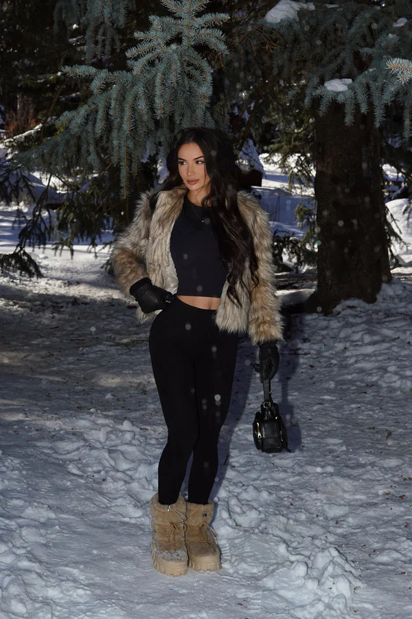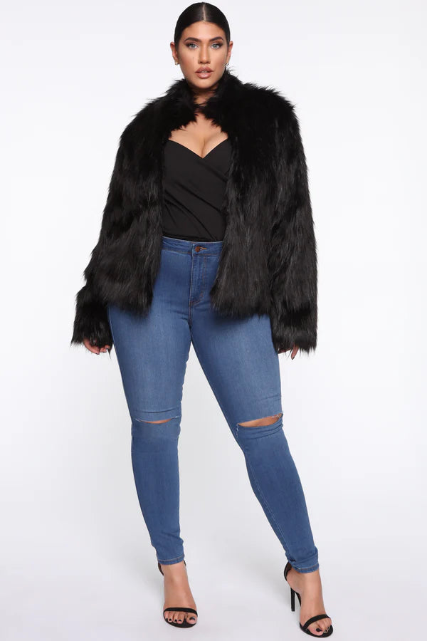 - Show up in chic. Our Fernanda Fur Coat features long sleeves, faux fur and hook closures for on-trend warmth that is as versatile as it is beautiful. Also available in brown, natural, pink, black, ivory, and burgundy.