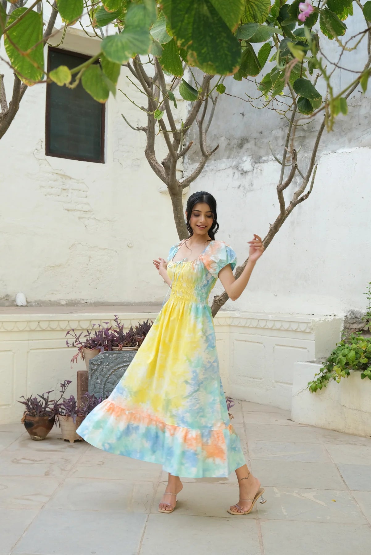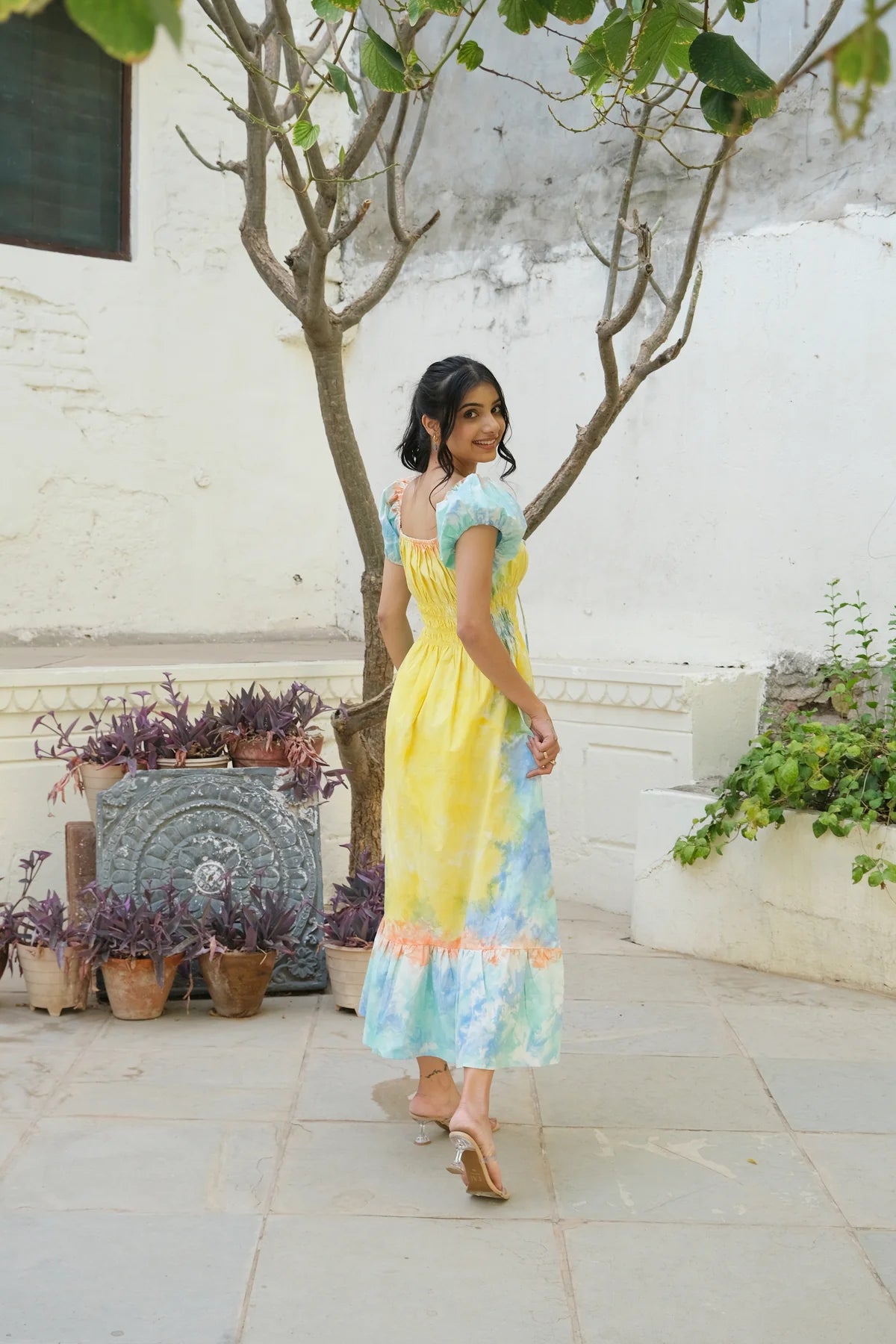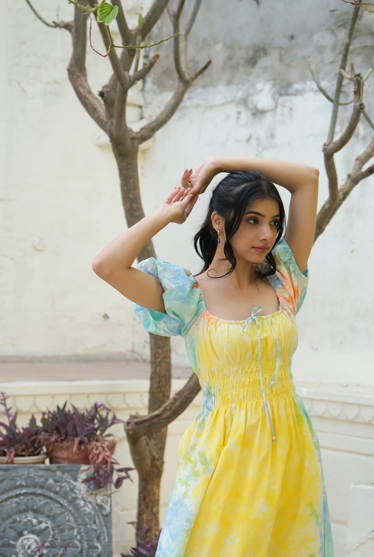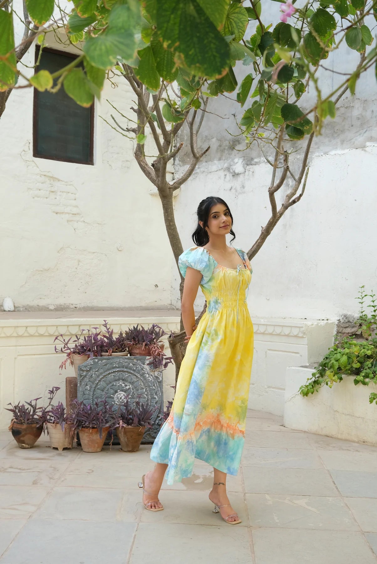The Flowy dress that can take you from beach to dinner. A Form Flattering Midi dress Crafted from Organic cotton fabric.