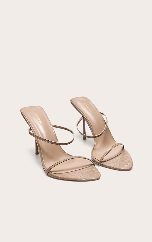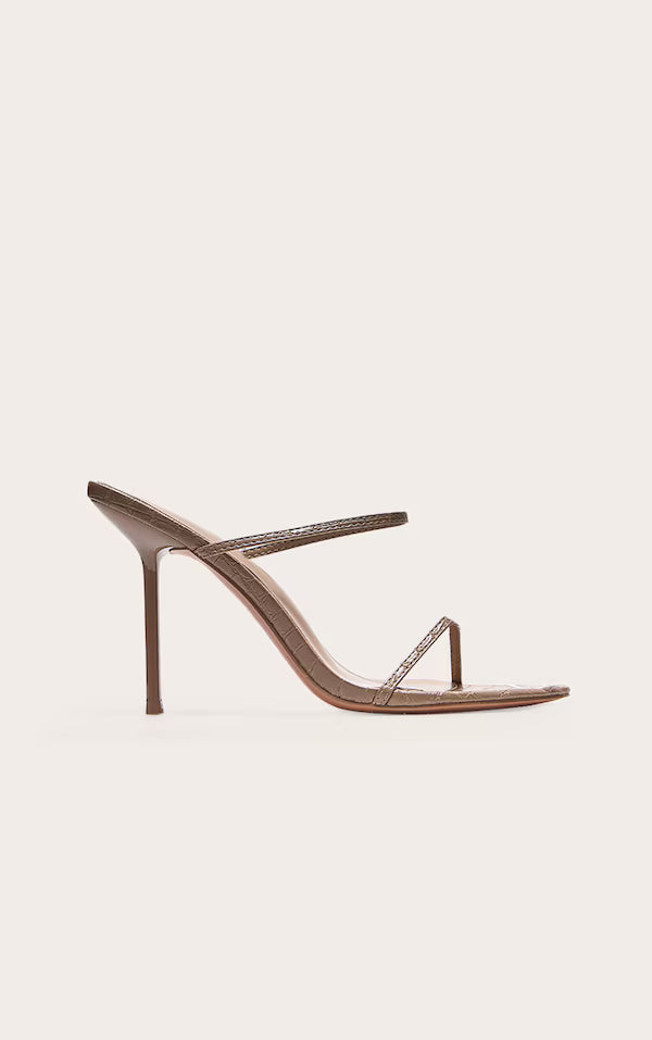 Taupe Croc Faux Leather Barely There Point Toe High Heels