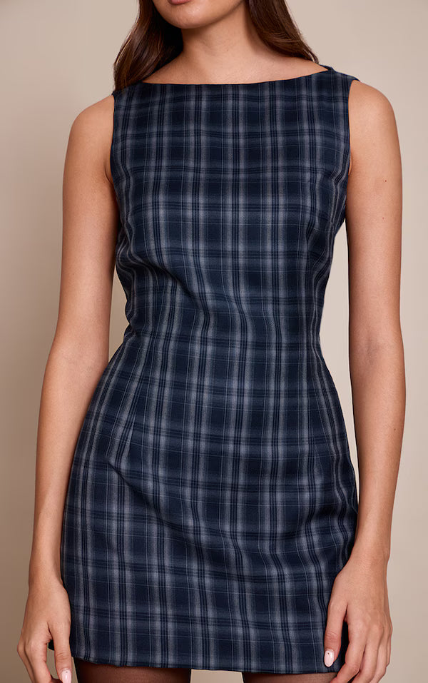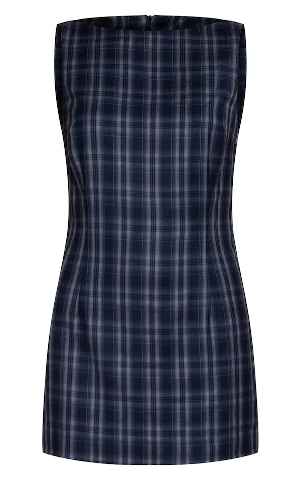 Check Boat Neck Sleeveless Shift Dress