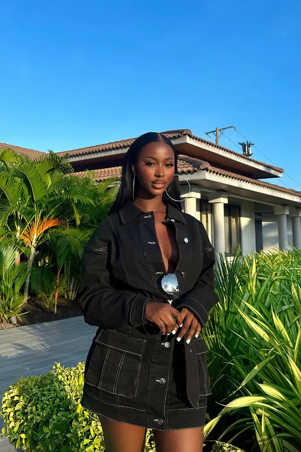 Stephanie Denim Mini Dress - Black