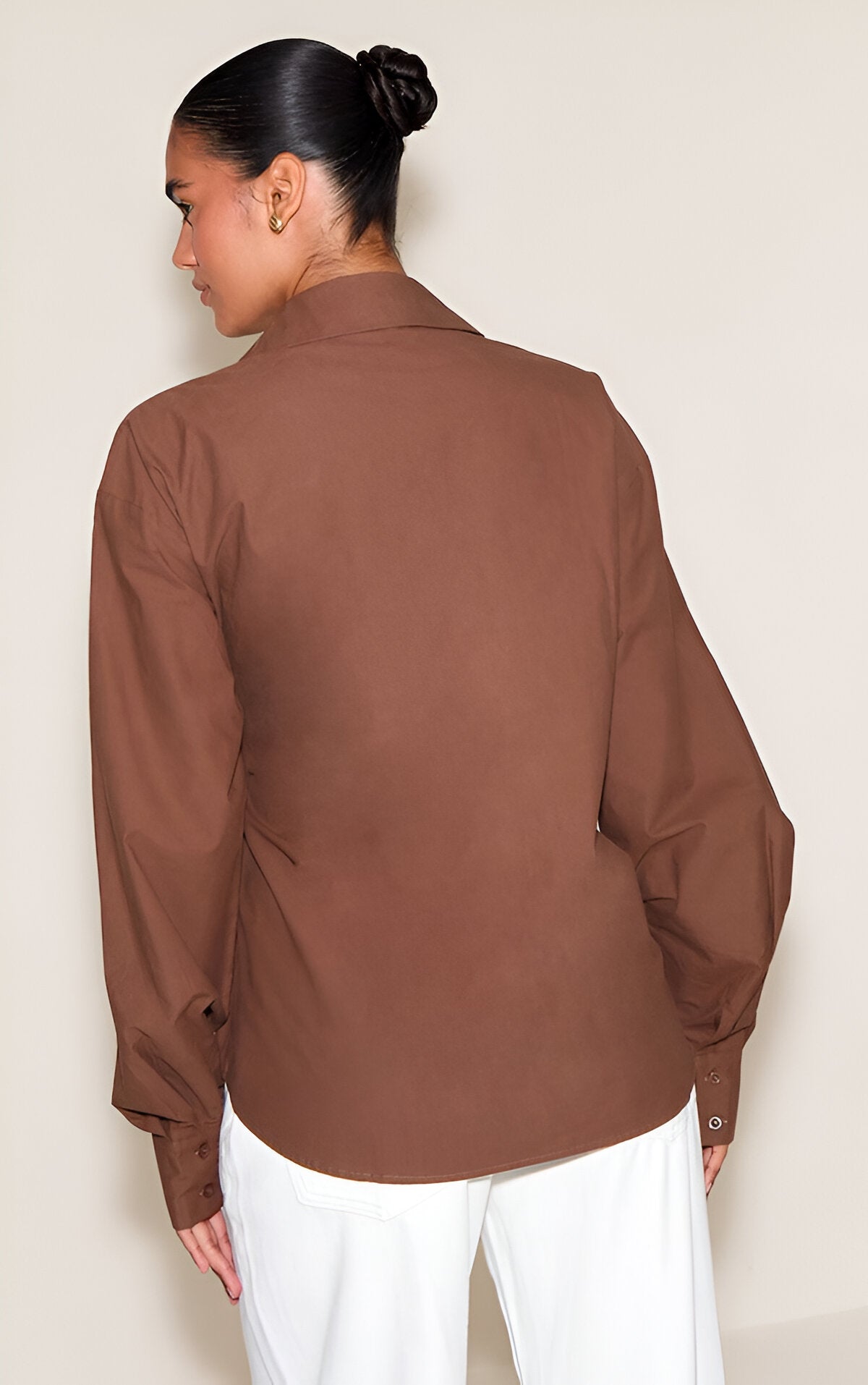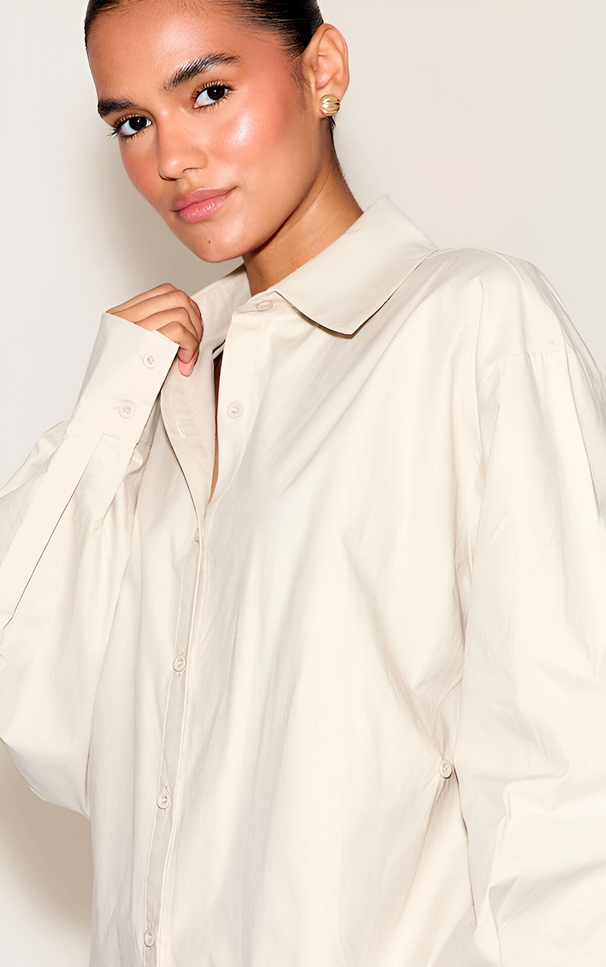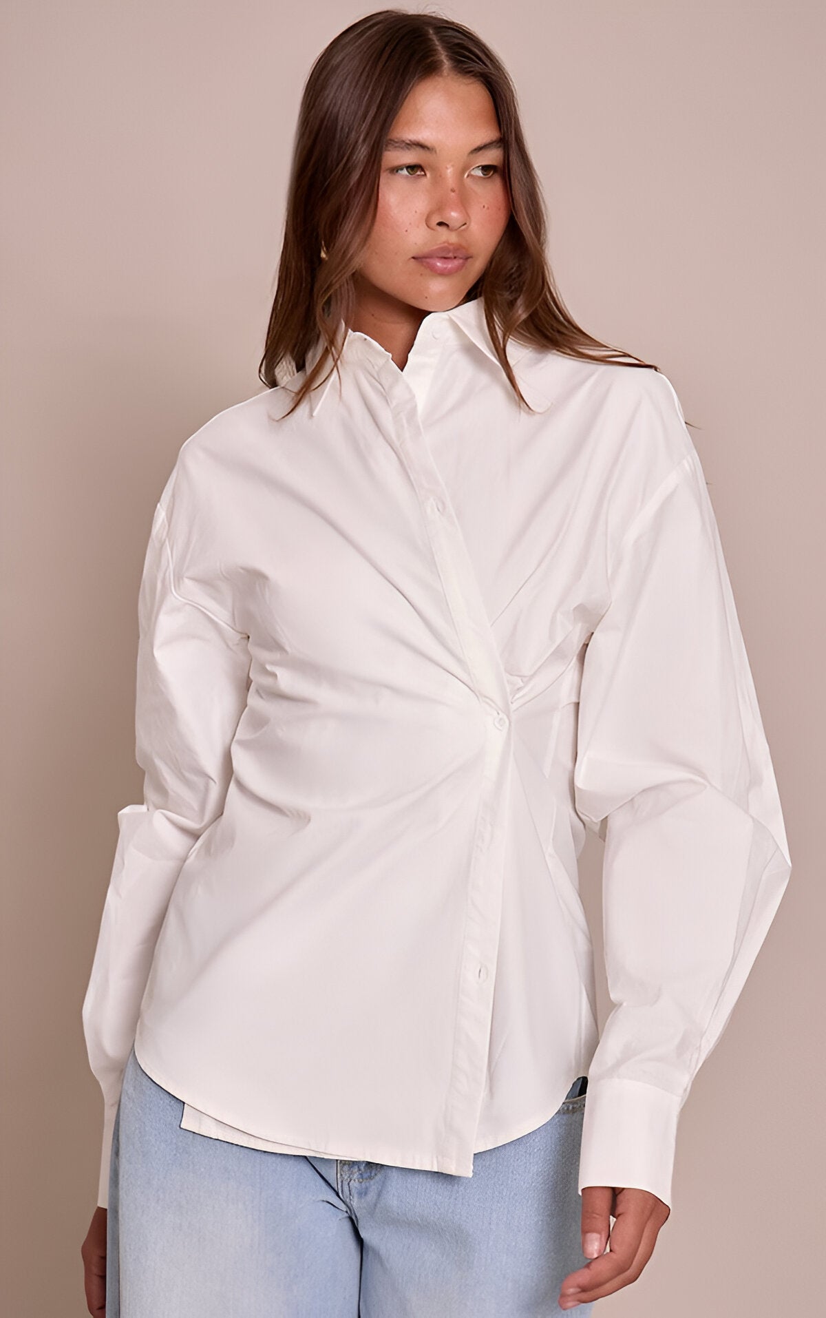 Opt for structured chic with the navy cotton multi button cinched shirt. Made from crisp navy cotton with multi-button details and a cinched waist, it delivers a sharp, feminine silhouette. Pair with straight-leg jeans and slip-on heels for an effortlessly polished vibe.