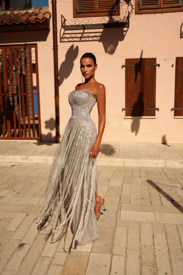 Dress crafted from embellished material with stones and details that create beautiful movement.Perfect for special events and unforgettable evenings.